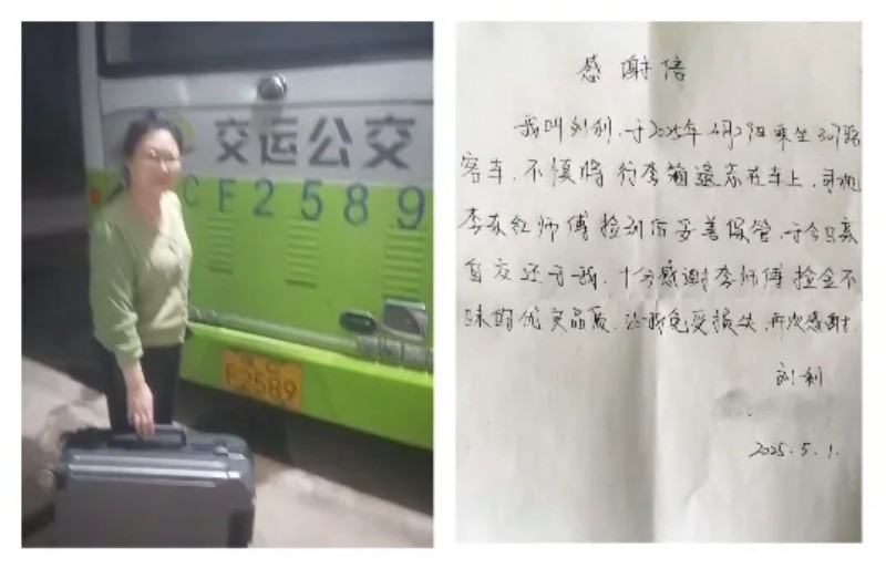 無獨有偶,同一天晚上,孟津分公司307路公交車駕駛員李東紅也在車廂里發(fā)現(xiàn)一個灰色行李箱,經(jīng)多方聯(lián)系,最終物歸原主。失主劉女士驚喜萬分:“本以為找不回來了,沒想到這么快就找到了,真是一份‘五一驚喜’!”
