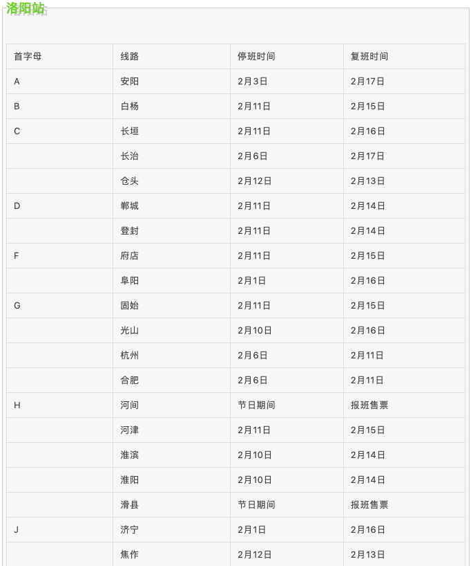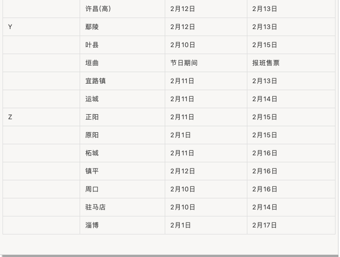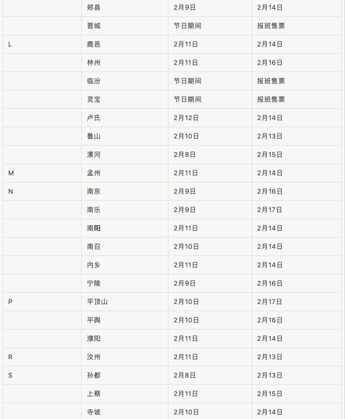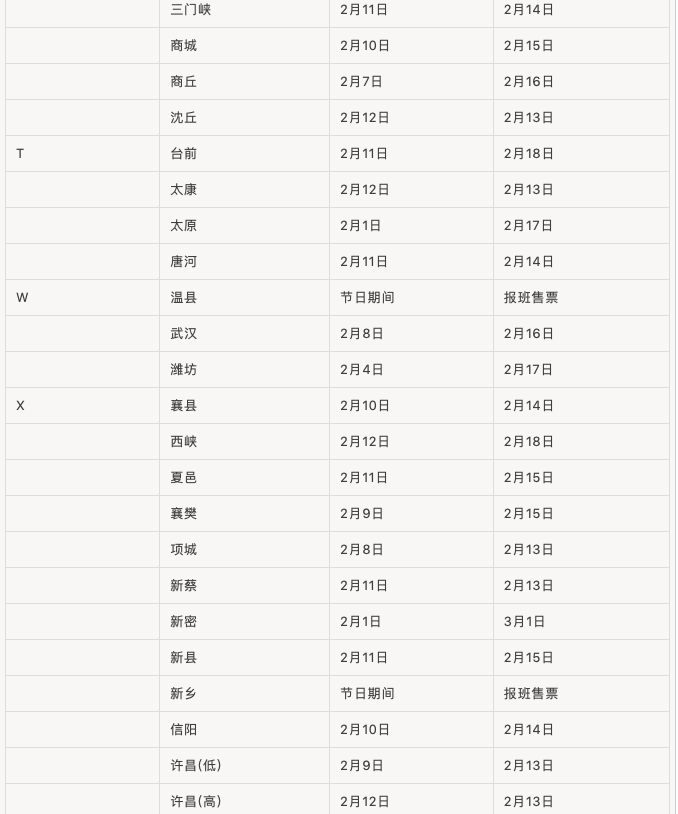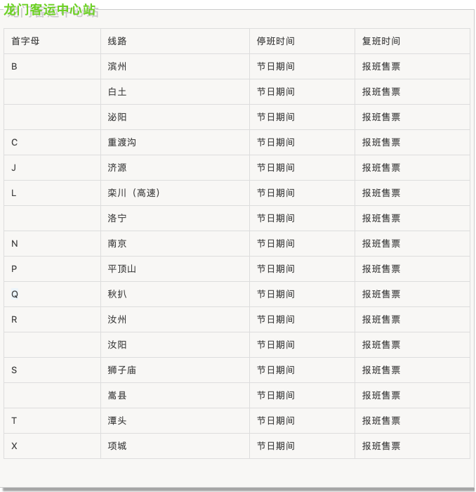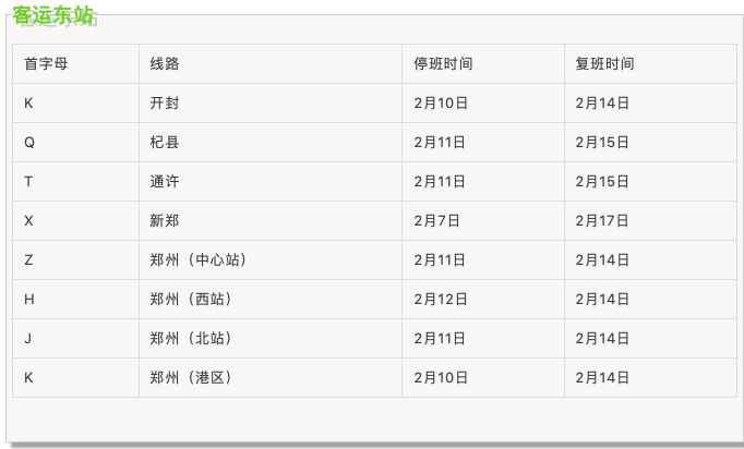 春節(jié)期間汽車站班線運(yùn)行時(shí)間表
